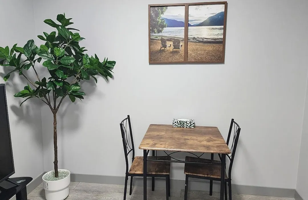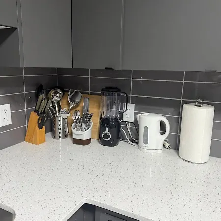 Cozy Nest 2 Bed Rooms Suit At Glacier Ridgeの台所を利用して、おいしい自家製の食事を作りましょう。 最寄りのカルガリー国際空港はこのアパートから20㎞です。